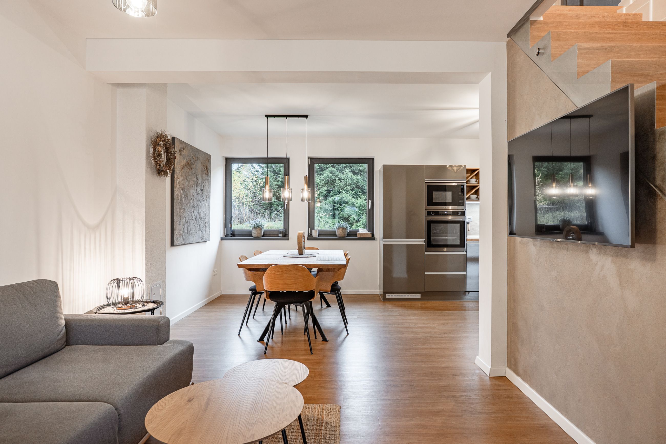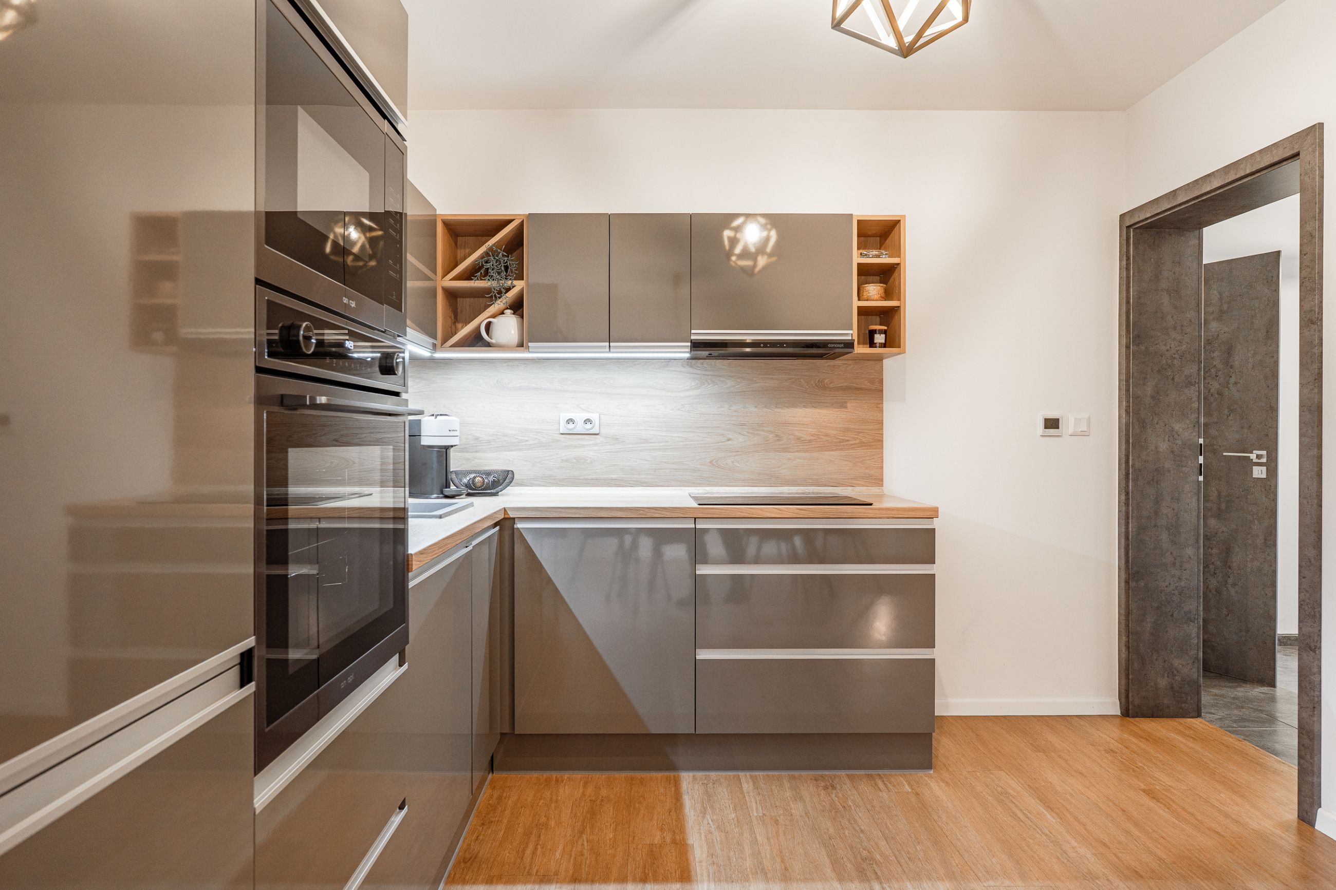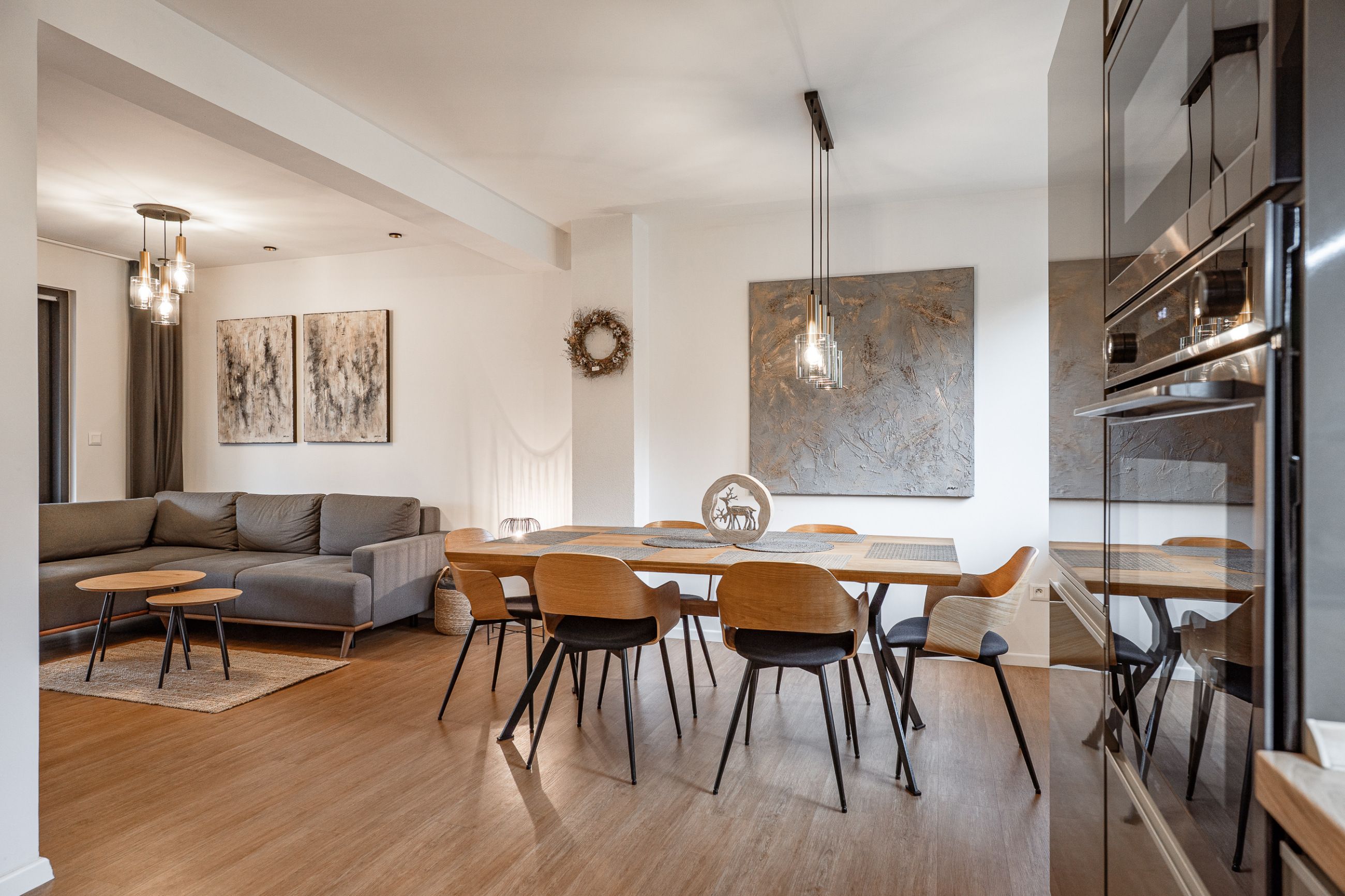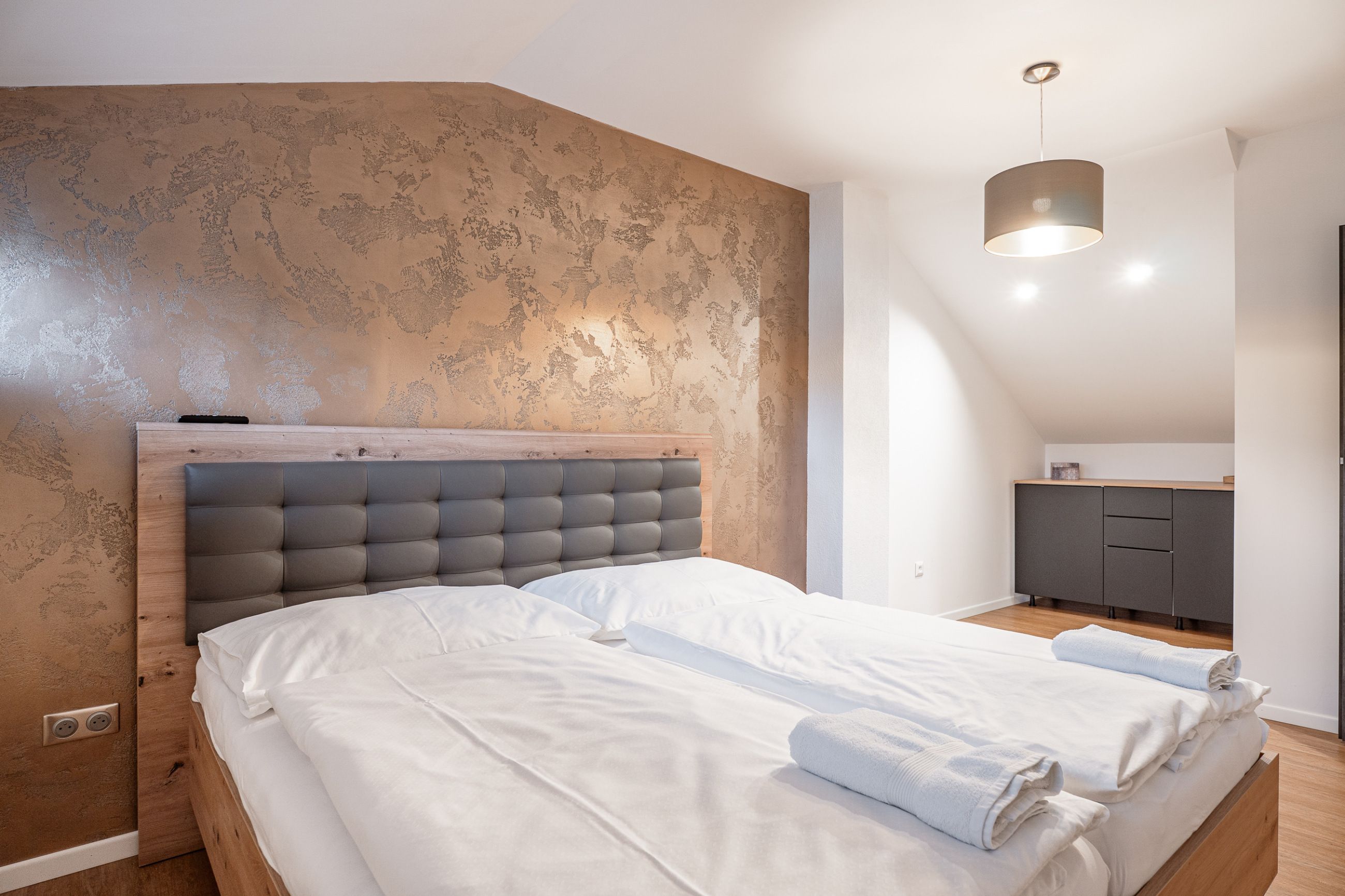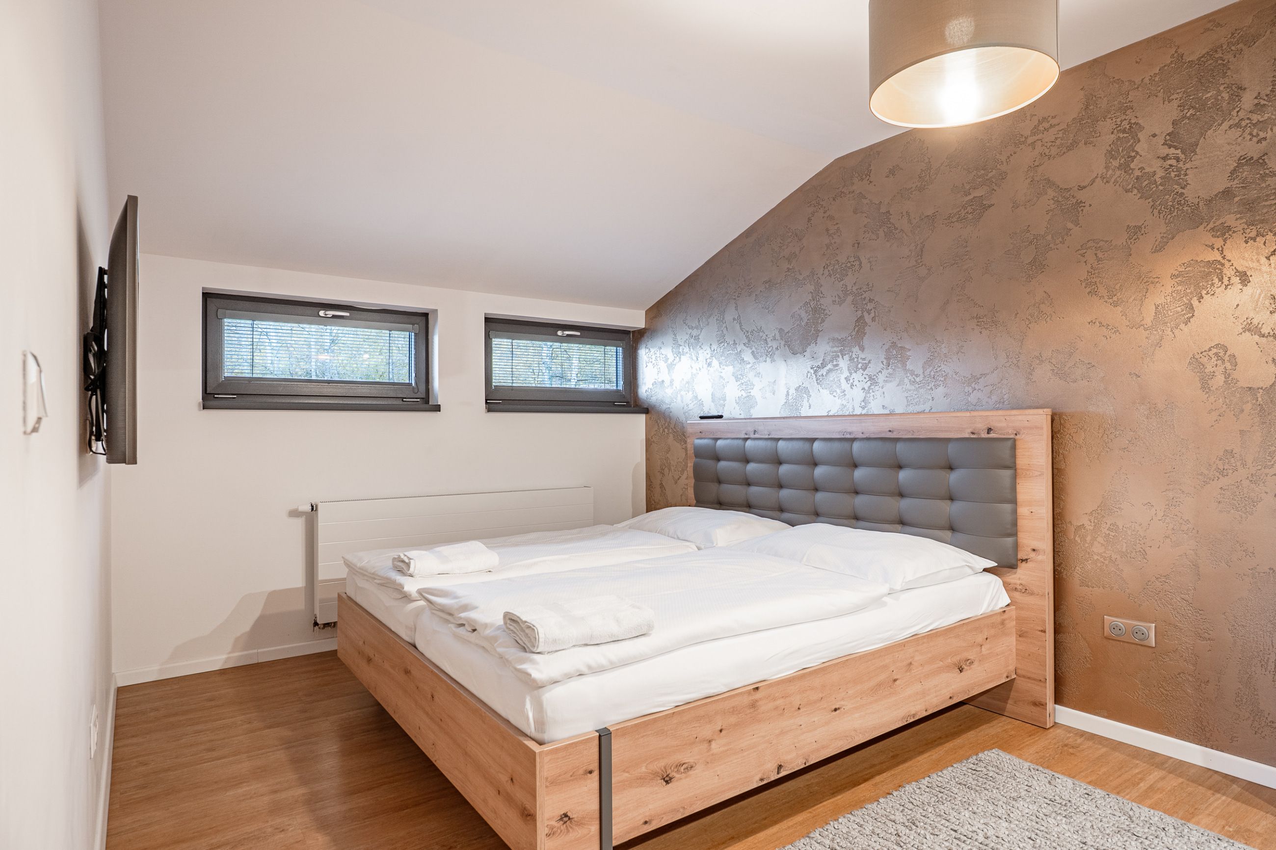 Apartmány jsou naprosto identické i v interiérovém vybavení – kompletně zařízené moderní kuchyně, kvalitní nábytek, designové koupelny a stylové dekorace.