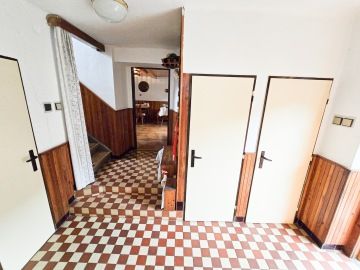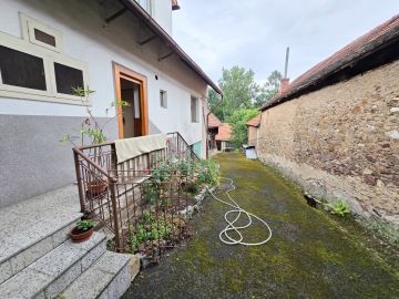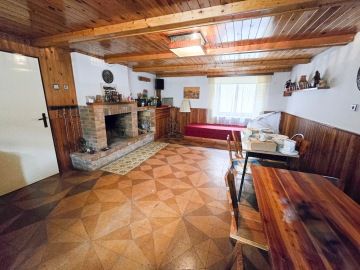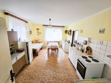 Nabízím k prodeji dům 4+1, který se nachází v obci Domašín u Vlašimi. Dispozičně je dům řešený vstupní chodbou, ze které se vchází do kuchyně a ze které se dostaneme i do obývacího pokoje. Dále je v přízemí prostorná místnost, jejíž dominantou je krb a je brána jako společenská místnost. Koupelna je s vanou a toaleta samostatně. V patře, do kterého vedou schody z chodby v přízemí, se nachází dva samostatné pokoje, dva menší půdní úložné prostory a vstup na půdu, která je prostorná a lze tam vybudovat další obytnou část. K domu je napojena hospodářská část, kde se nachází garáž, chlév, kde byla hospodářská zvířata, králíkárna a půda na seno. Na pozemku je i krásná a suchá stodola 165m², která je rozdělena na dvě části, v první části byla truhlářská dílna a půda a v druhé části byl chov slepic a jsou zde i dva kurníky. K domu je přiveden plyn, stejně tak tlaková kanalizace. Voda je městská, ale je zde i studna. Vytápění zajišťuje kotel na pelety se zásobníkem na cca 3 dny. Dům má vytvořen i oficiální znalecký posudek od statika. V obci je obchod, školka, pošta, veškerá občanská vybavenost je pak ve Vlašimi, vzdálené 1 km od domu. Perfektní přímé spojení s Prahou MHD. Automobilem je to na Chodov 40 min. jízdy. Dům lze financovat hypotečním úvěrem, se kterým Vám rád pomohu. Jelikož ještě nebyl vypracován energetický štítek budovy, uvádíme písmeno G.
